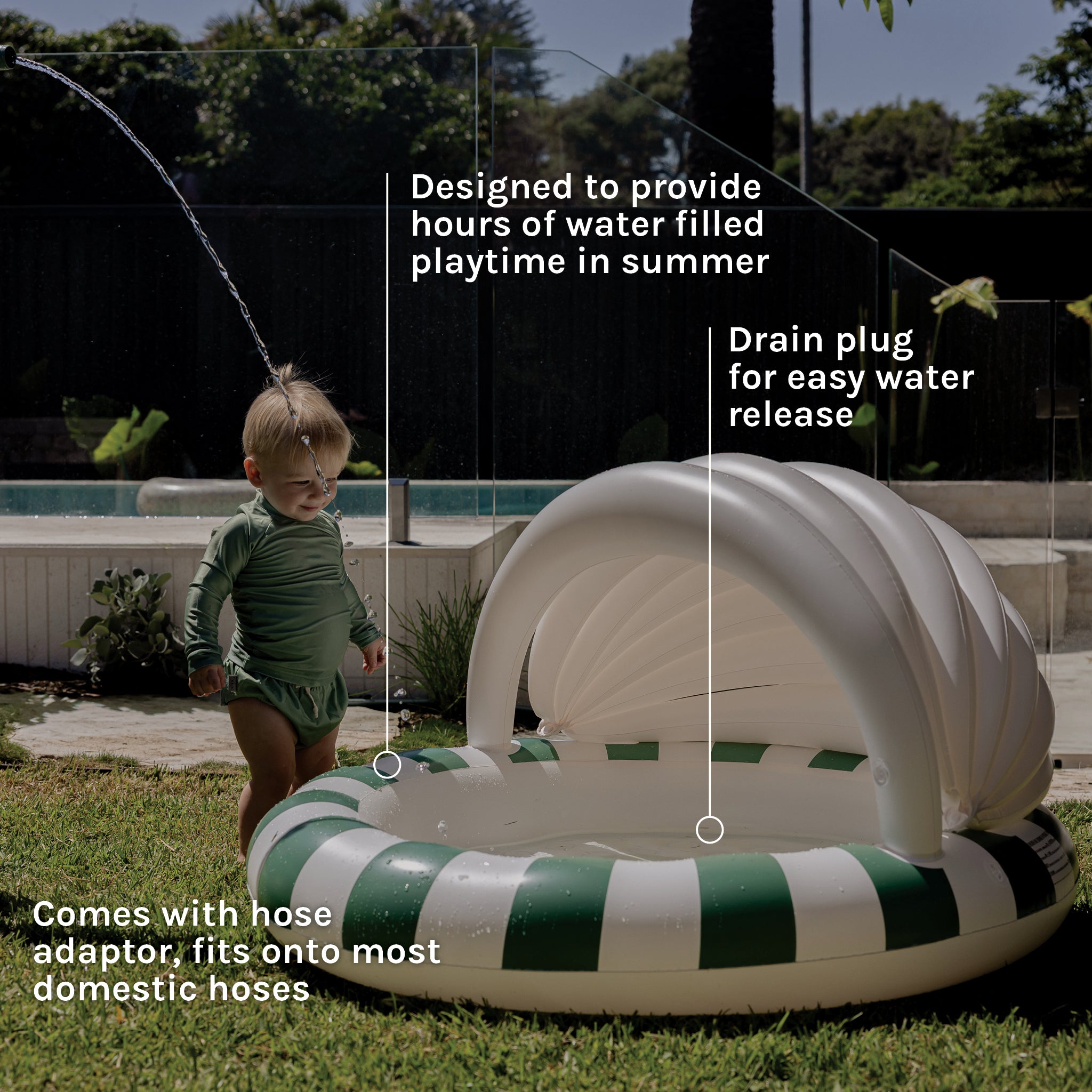 - Designed with sunshade to keep children out of the heat and sun.