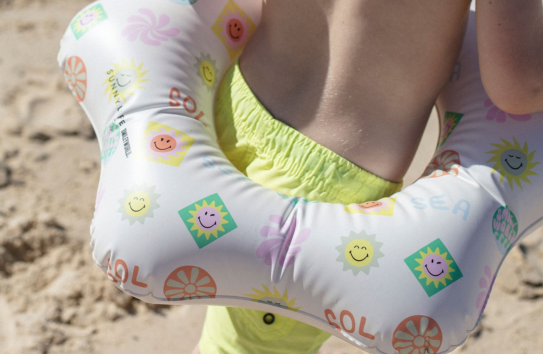 Machen Sie diesen Sommer Spaß mit dem trendigen Sol Sea Kiddy Pool Ring mit einem SmileyWorld®- Aufdruck im Collagen-Stil auf einem frischen, weißen Hintergrund. Dieser Mini-Schwimmring wurde für kleinere Körper entwickelt und sorgt dafür, dass sich die Kleinen wohlfühlen und gestützt werden, während sie ihr Vertrauen in das Wasser finden. Mit einem geteilten Design für einfachen Ein- und Ausstieg ist der Sol Sea Kiddy Pool Ring einer der besten Schwimmbecken für Kinder aus der Kollektion.