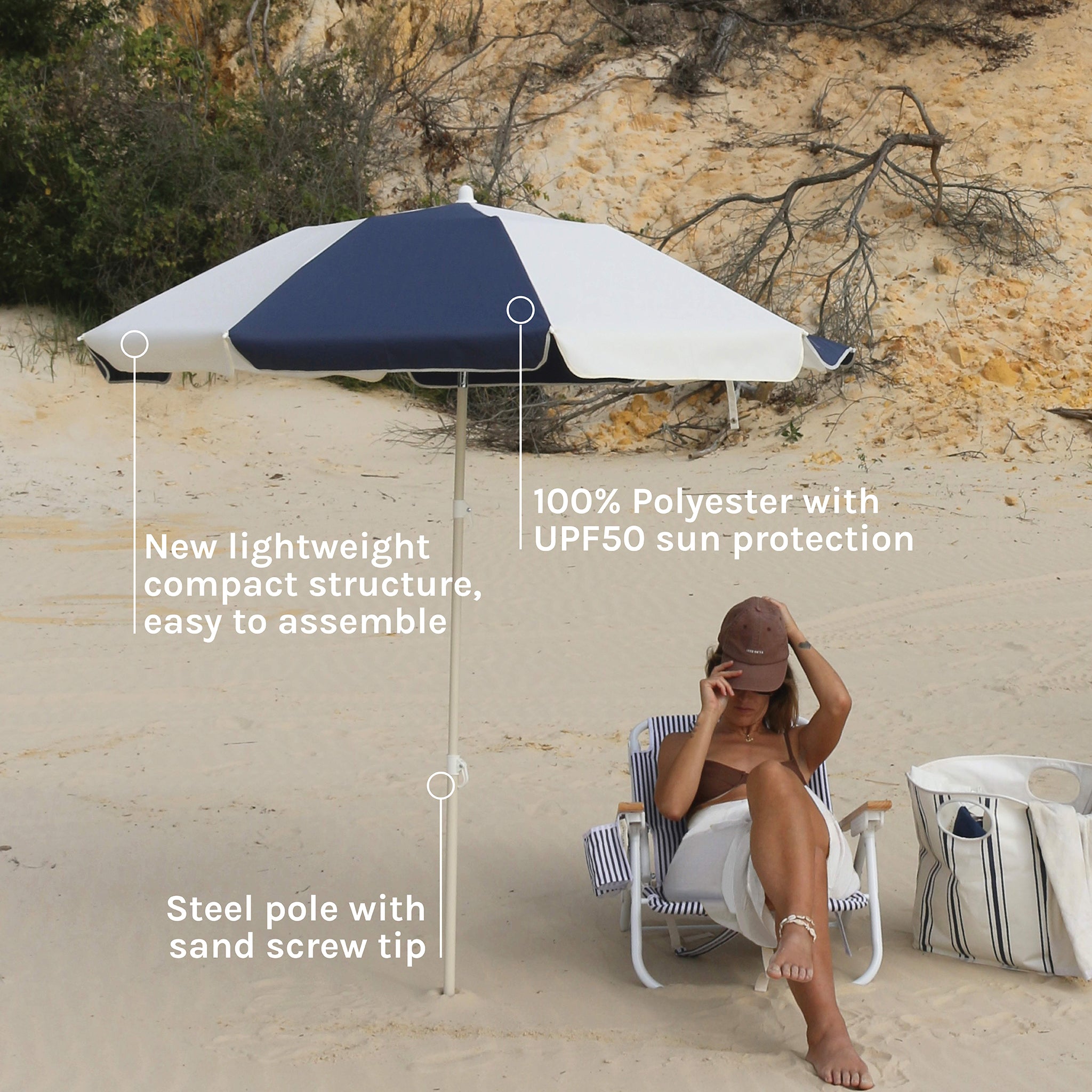 Seek all day shade with the ultimate beach companion. The Compact Beach Umbrella is functional and compact, ultra easy to carry with space for two to lounge beneath its canopy.