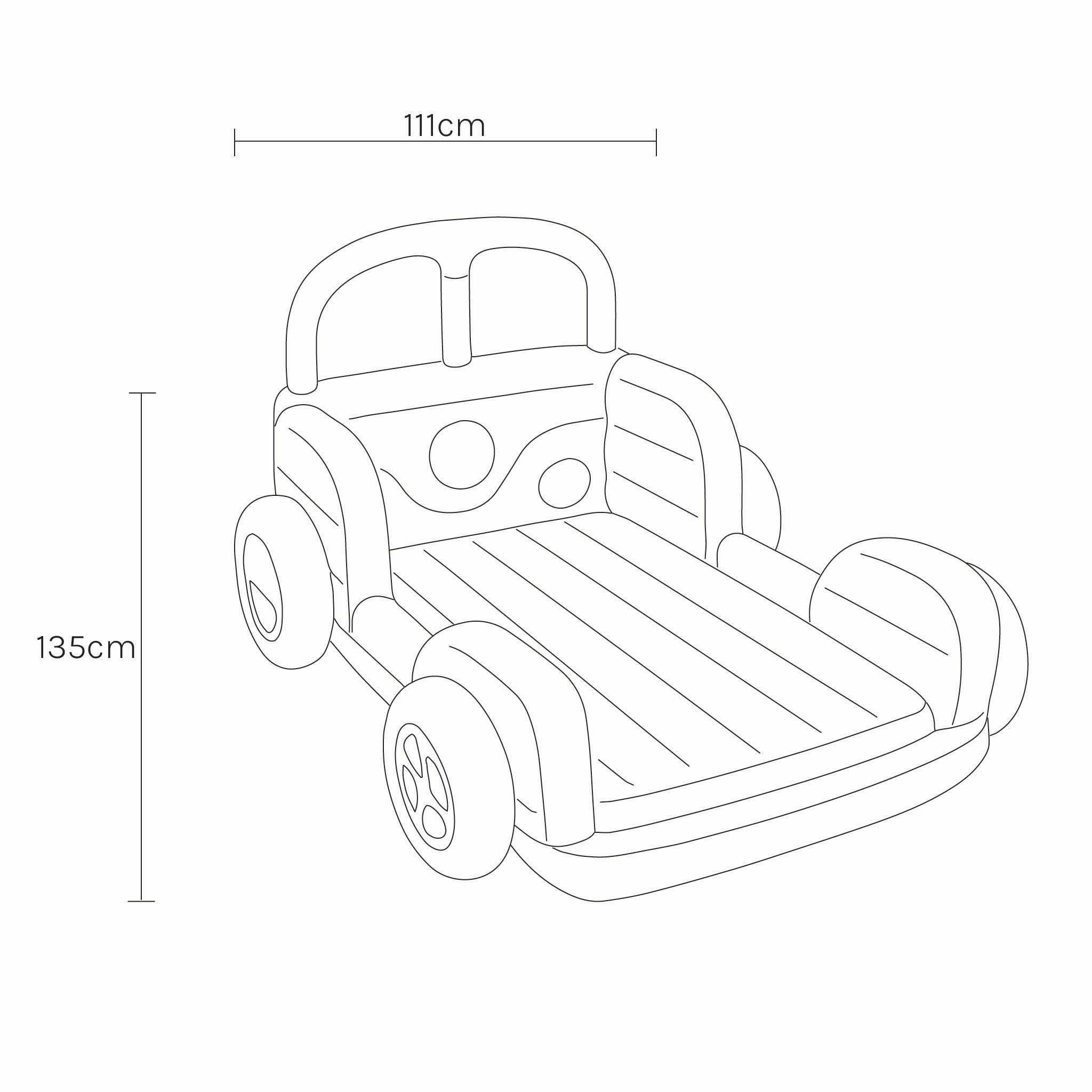 Generously sized at L 135 W 111 H 79 cm | L 53.1 W 43.7 H 31.1 in, this inflatable mattress offers cozy comfort for naptime, play, or sleepovers.