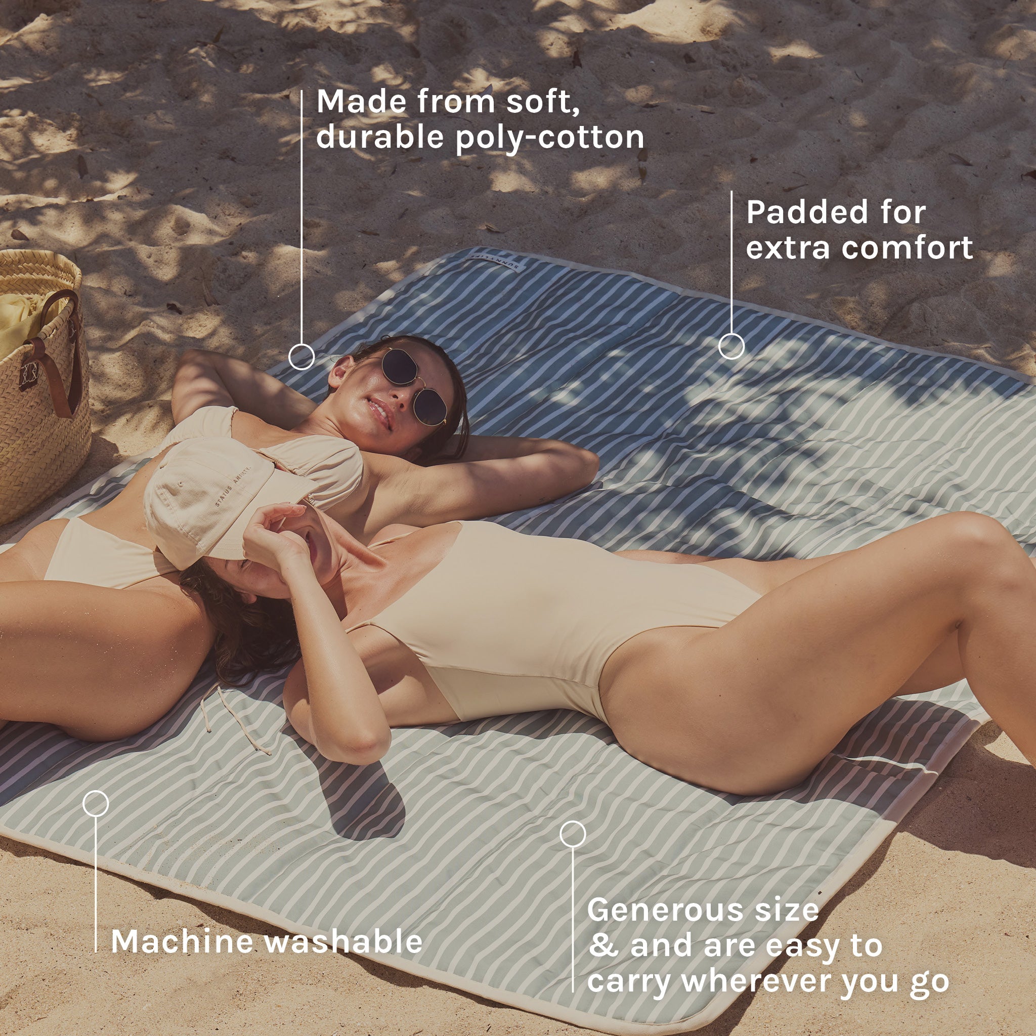 An oversized, machine washable Beach Blanket. Perfect for outdoor living, from seaside to backyard and everywhere in between.