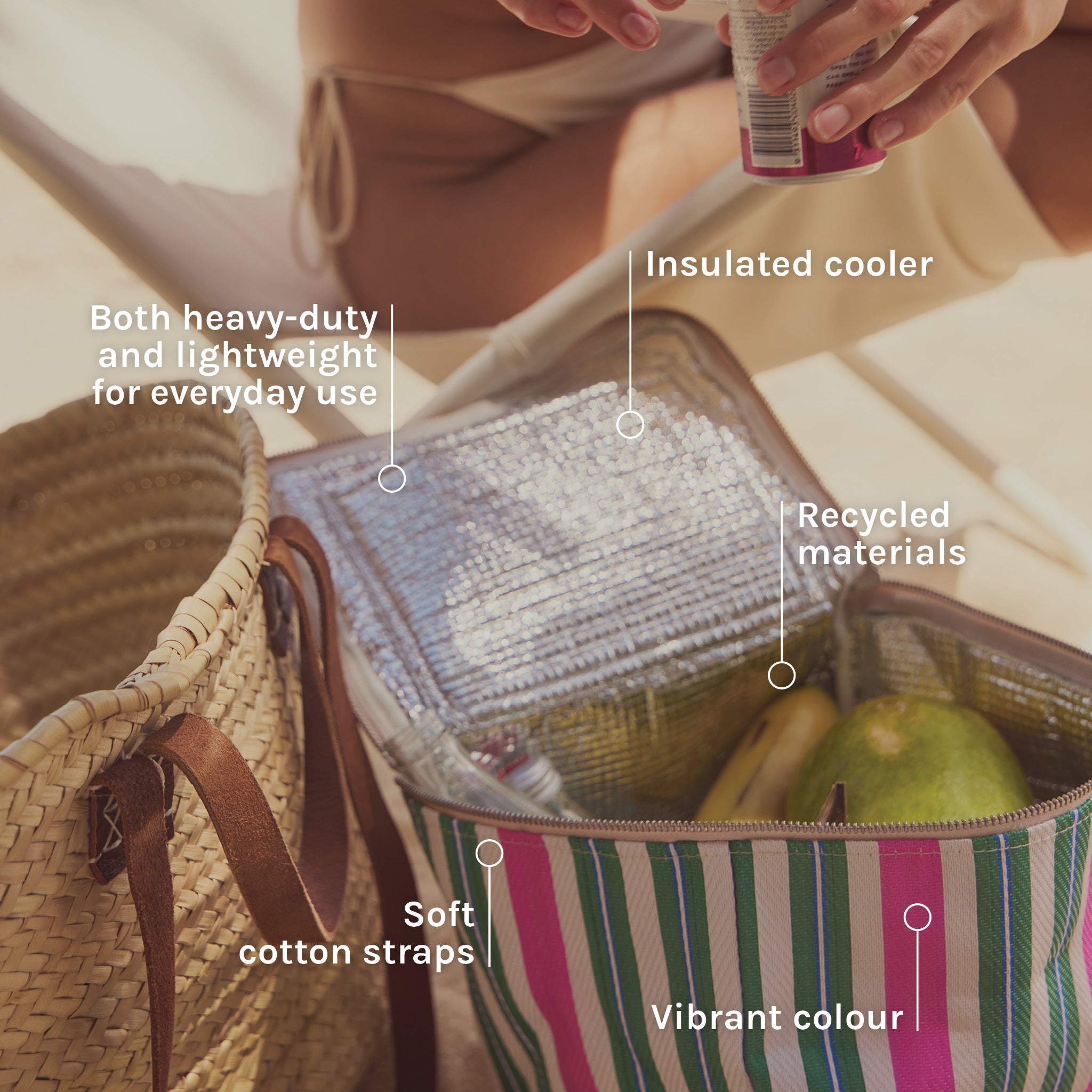The Lunch Cooler Bag is effortless and functional. Keeping your essentials cold and your day cool. Perfect for any adventure!