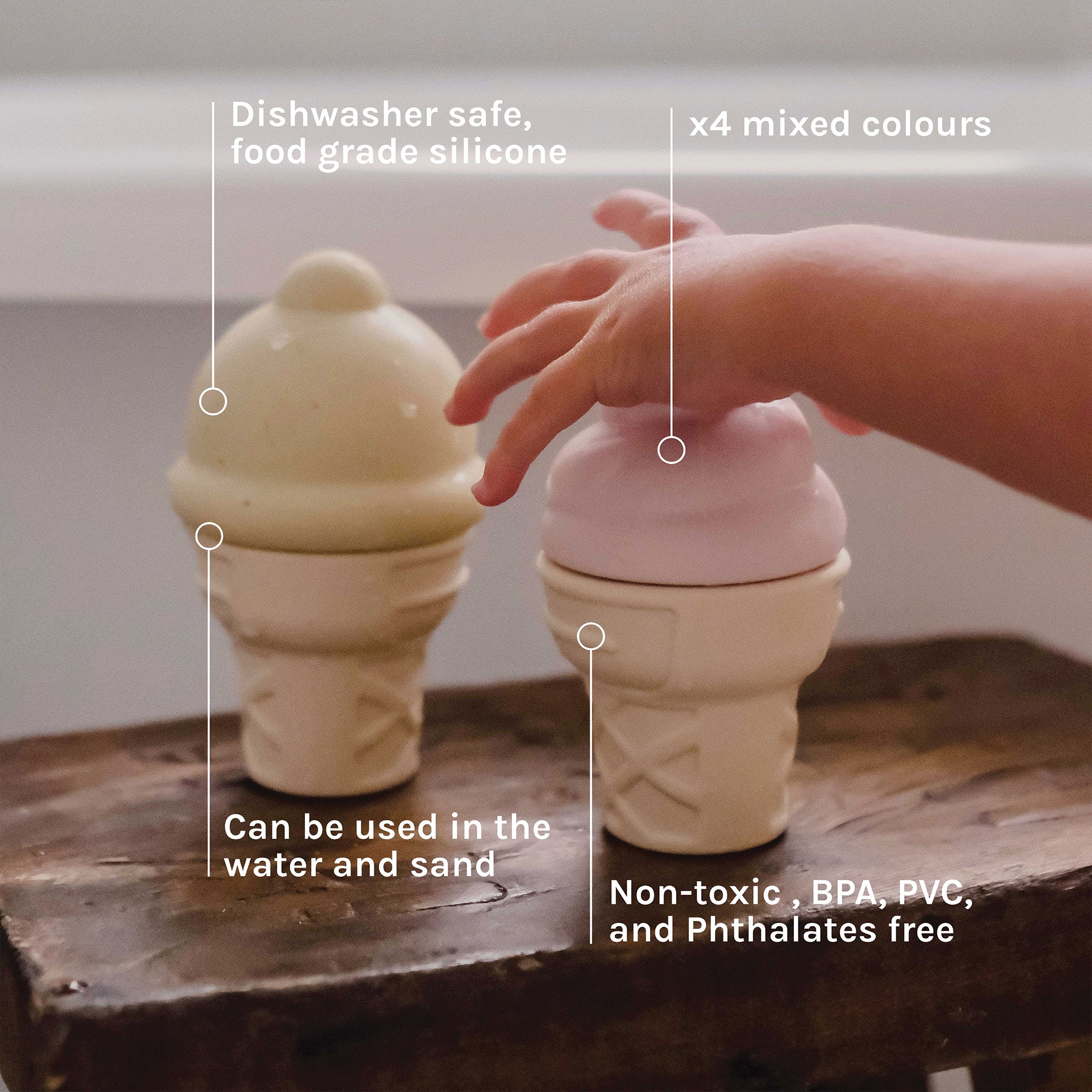 Make a splash with the cutest bath time accessories. The Ice Cream Splash Toys are designed to make bathing a fun and enjoyable experience for both parents and kids. Made from 100% non-toxic food grade silicone for safety, these toys are guaranteed to put a smile on your child's face and capture their playful imaginations. Little ones can stack, fill up, and pour out water alongside building hand-eye coordination. Ensure tub time is the best time with this set of 4 detachable ice cream cones washed over by sweet pastel tones.