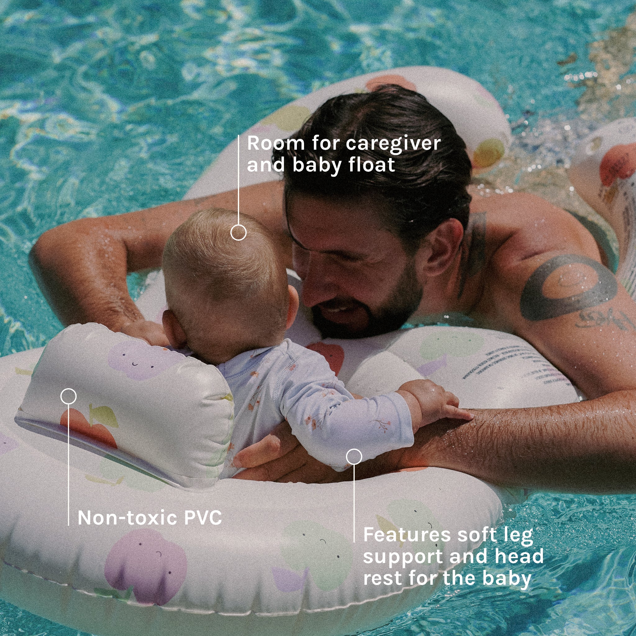 - Caregiver and baby float.