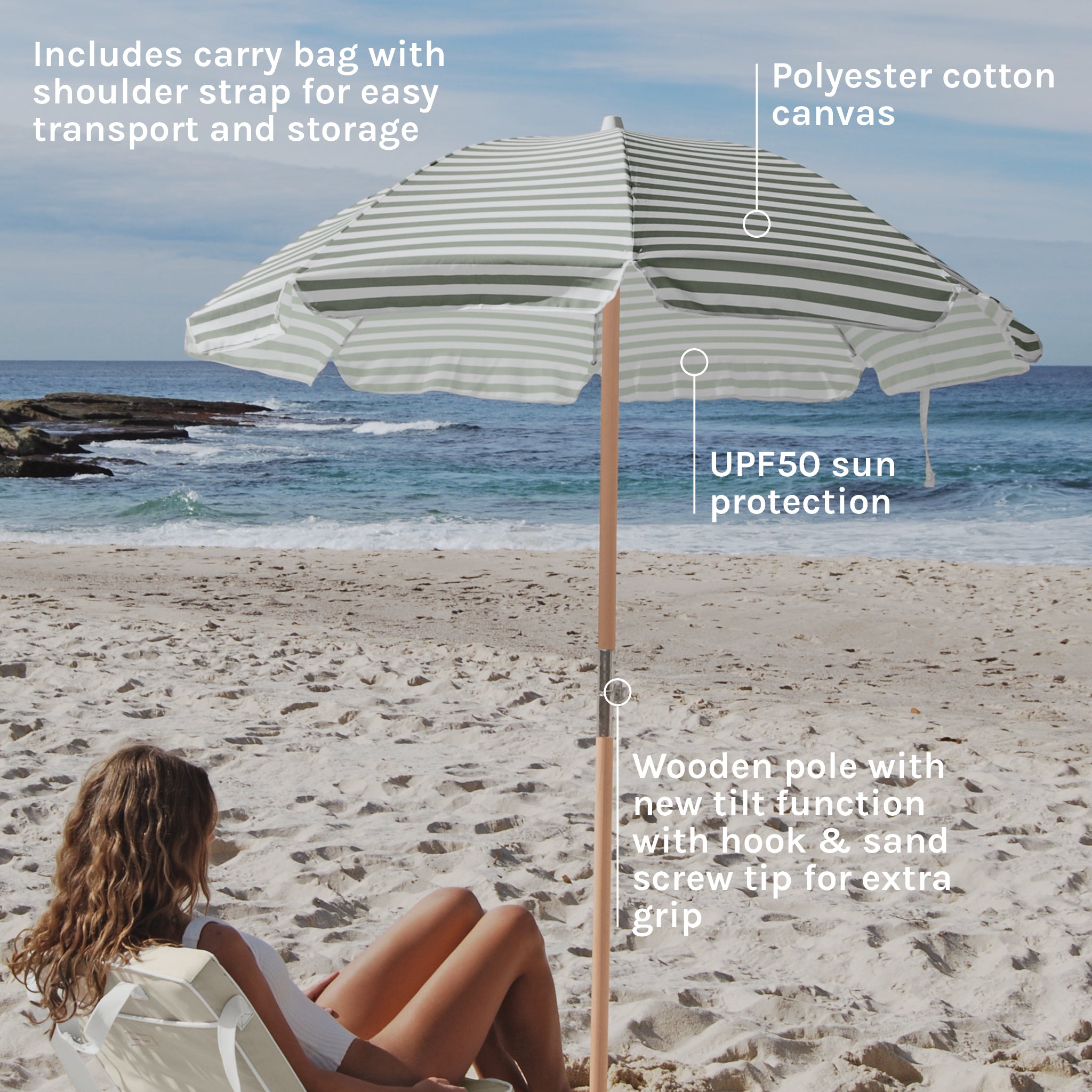 Luxe Beach Umbrella - Seagrass Stripe