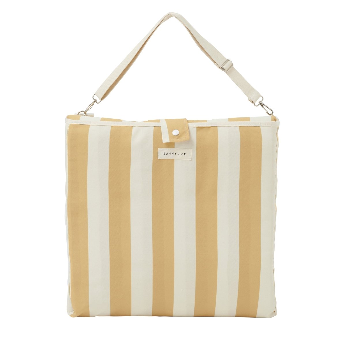 Recline in comfort with the ultimate outdoor chaise. The Mango Bay Recliner is extremely comfortable and chic for long days spent under the sun. Made from durable, water and fade resistant cushioned cotton canvas and featuring an adjustable backrest for extra comfort, relaxing has never been so easy. From beach to park to pool, simply fold it out on any surface and claim your sunshine with its vintage look. Soak up your surroundings in style with its golden mustard maxi stripe print that will have you mesmerised all day long.