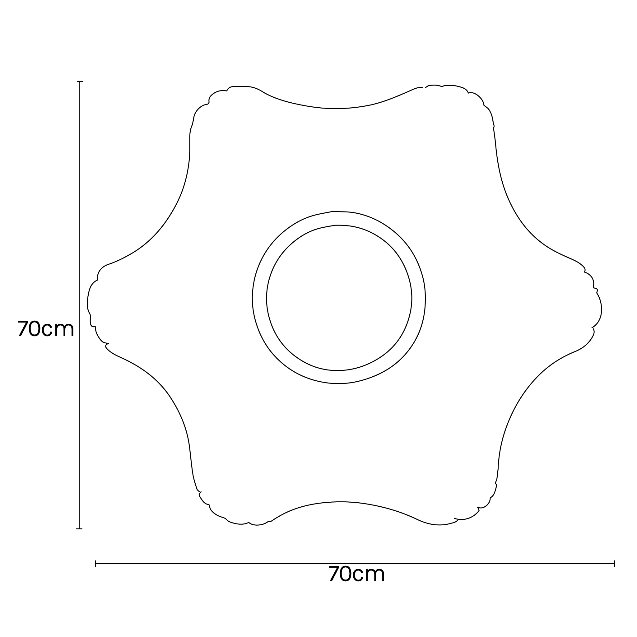 L 70 W 70 H 25 cm | L 27.56 W 27.56 H 9.84 in