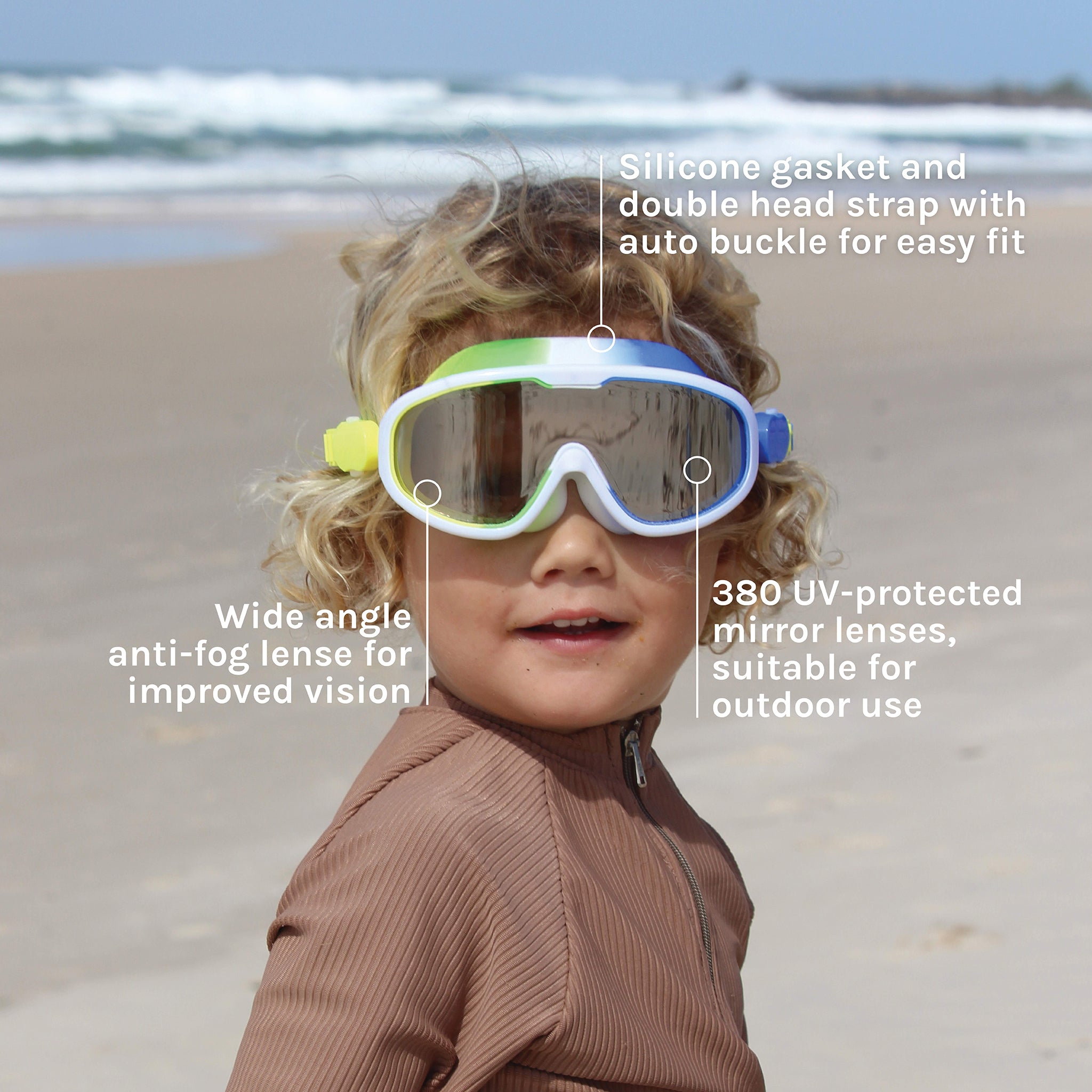 With protective mirrored lenses, a soft silicone fit, and a simple auto-buckle strap, this swim mask helps young swimmers stay comfortable and secure. The anti-fog wide-angle design boosts visibility so they can explore the water with confidence.